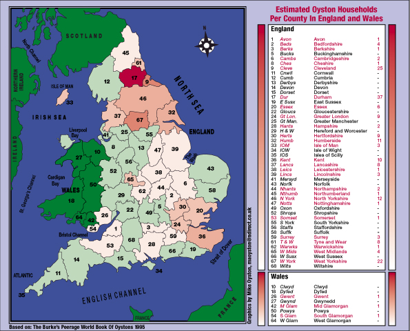 Distribution of Oystons in Britain by County![]()